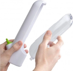 Praktyczny pojemnik na zioła utrzyma je aż 3× dłużej świeże. Wystarczy włożyć pęczek do środka, uzupełnić wodę przez zamknięcie z silikonową zatyczką i gotowe. Świetny nie tylko do pietruszki, kolendry czy mięty, ale także do szparagów i selera. Łatwo się czyści, a dzięki wytrzymałemu plastikowemu wykonaniu w białym kolorze pasuje do każdej kuchni.