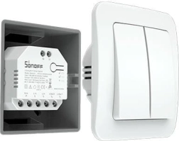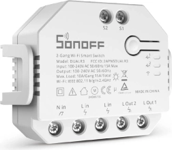 Kompaktowy inteligentny przełącznik SONOFF Dual R3 z dwoma niezależnymi kanałami i pomiarem zużycia energii steruje oświetleniem, obwodami gniazd oraz żaluzjami i roletami. Łączy się przez Wi‑Fi 2,4 GHz, działa w aplikacji eWeLink, oferuje harmonogramy i posiada certyfikat TÜV dla wyższego poziomu bezpieczeństwa.