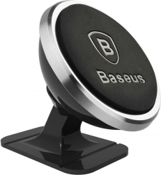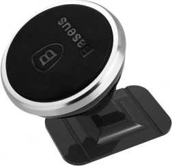 Uniwersalny magnetyczny uchwyt BASEUS do bezpiecznego mocowania telefonu w samochodzie i na biurku. Oferuje silną magnetyczną fiksację, obrotowy przegub 360° dla idealnego kąta widzenia oraz eleganckie aluminiowe wykończenie w srebrnym kolorze. Dzięki kompaktowym rozmiarom i samoprzylepnemu montażowi trzyma się pewnie na desce rozdzielczej, suficie lub dowolnej płaskiej powierzchni.