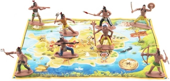 Zestaw „Figurki Indian z mapą” jest idealny dla małych poszukiwaczy przygód zainteresowanych historią i pragnących odkrywać świat plemion indiańskich. Zawiera osiem szczegółowych plastikowych figurek Indian oraz kolorową ilustracyjną mapę.