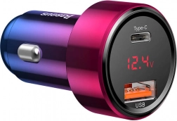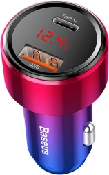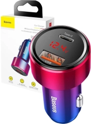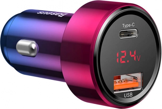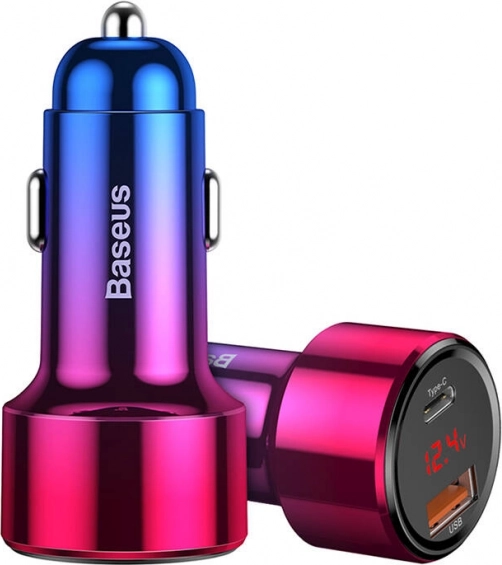 Stylowa czerwono‑niebieska ładowarka samochodowa BASEUS Magic inteligentnie dopasowuje się do potrzeb Twojego urządzenia i zapewnia szybkie i bezpieczne ładowanie podczas jazdy. Dzięki połączeniu portów USB‑C i USB‑A bez problemu naładujesz dwa urządzenia jednocześnie – od smartfonów, przez tablety, po akcesoria.
