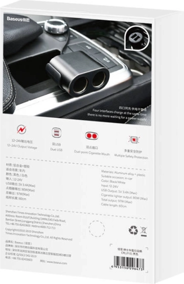 Maksymalnie wykorzystaj gniazdo pokładowe: rozdzielacz BASEUS dodaje kolejne gniazdo zapalniczki oraz podwójne USB z łącznym prądem 3,1 A. Bez trudu naładujesz telefon, nawigację i kamerę jednocześnie, podczas gdy kompresor lub lodówka samochodowa będą działać przez wydajne wyjście do 100 W.