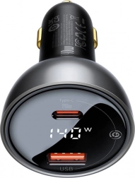 Wydajna ładowarka samochodowa Baseus Superme o maksymalnej mocy 140 W oferuje porty USB‑C i USB do szybkiego ładowania nawet 2 urządzeń jednocześnie. Wspiera nowoczesne standardy szybkiego ładowania (PPS, PD3.0, QC3.0 itd.), ma wbudowany cyfrowy wyświetlacz i dzięki podwójnemu układowi zabezpieczeń chroni Twoje urządzenia. Kompatybilna z instalacjami 12–24 V i wyposażona w pozłacane złącza dla stabilnego połączenia.