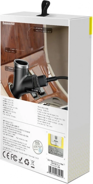 Uniwersalna ładowarka samochodowa Baseus typu Y łączy przelotowe gniazdo zapalniczki samochodowej z 2× USB (3,4 A) do szybkiego ładowania. Wydajny moduł 40 W zasili nawet bardziej wymagające urządzenia, a zaawansowane zabezpieczenia chronią przed zwarciem, przegrzaniem i przeładowaniem.