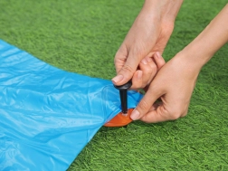 Sama instalacja jest prosta. Wystarczy rozłożyć zjeżdżalnię na trawę, podłączyć wąż i cieszyć się godzinami wodnej zabawy na świeżym powietrzu.