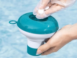 Utrzymuj wodę w basenie idealnie czystą dzięki pływającemu dozownikowi chloru Bestway. Odpowiedni dla tabletek o średnicy do 2,5 cm, oferuje regulowane dozowanie, równomierne uwalnianie chemii i łatwe napełnianie dzięki praktycznej pokrywie z wytrzymałego plastiku.