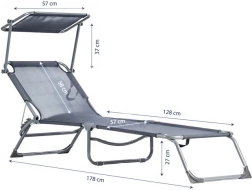 Ustawiany daszek przeciwsłoneczny chroni przed bezpośrednim słońcem. Łatwo wyregulujesz wysokość i kąt nachylenia dla maksymalnego komfortu podczas czytania, odpoczynku i opalania.