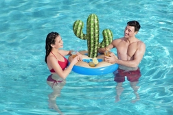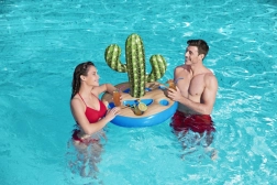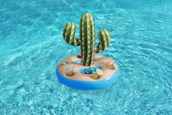 Dmuchany stojak na napoje Bestway Kaktus zamieni każdą kąpiel w beztroską imprezę. Sześć praktycznych uchwytów stabilnie utrzyma Twoje kubki i puszki na powierzchni wody, a dwie zintegrowane komory chłodzące zadbają o orzeźwienie przez cały dzień. Wytrzymałe PVC i przemyślany design gwarantują długą żywotność oraz łatwe przechowywanie.