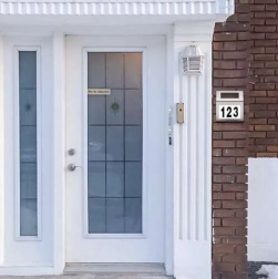 Szeroki wybór numerów i liter umożliwia personalizację. Zestaw zawiera trzy arkusze naklejek z numerami (0-9) oraz jeden arkusz z literami (a-h), które można łatwo przykleić na oświetloną powierzchnię. Zestaw zawiera również śruby i kołki do łatwego montażu na dowolnej powierzchni.