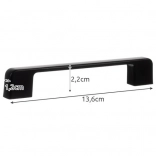 Specyfikacje produktu obejmują czarny matowy kolor, aluminiowy materiał i dwa otwory montażowe o rozstawie 96 mm. Wymiary to 10,4 x 2,2 x 1,2 cm, co zapewnia solidną i stabilną konstrukcję na długą żywotność.