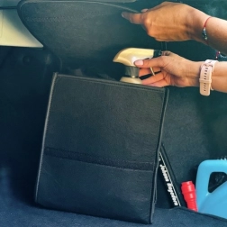 Elementem organizera jest także rączka do przenoszenia, która czyni go wielofunkcyjną torbą. Już nigdy nie będziesz musiał niepotrzebnie przepakowywać, gdy potrzebujesz przenieść rzeczy poza samochód.