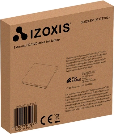Kompaktowy zewnętrzny napęd CD/DVD Izoxis z interfejsem USB 3.0 odtwarza i nagrywa płyty CD oraz DVD i działa bez instalacji dzięki Plug & Play. Oferuje prędkość odczytu CD 24× i DVD 8×, zapisu CD 24× oraz DVD 8×, ma zintegrowany kabel USB 3.0 oraz uniwersalną kompatybilność z Windows, macOS i Linux. Lekki i przenośny – idealny w podróży oraz jako szybkie rozszerzenie laptopa lub komputera PC.