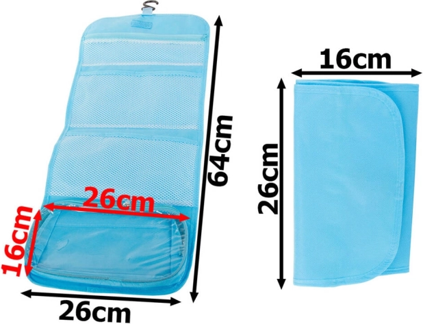 Kosmetyczka łatwo się składa do małych rozmiarów, oszczędza miejsce w bagażu.