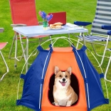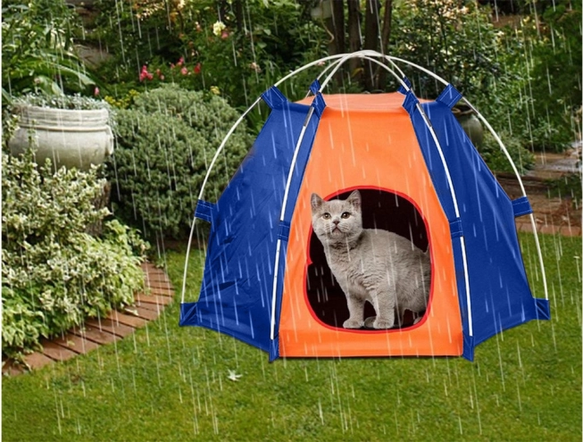 Praktyczny namiot dla psów i kotów tworzy komfortowe schronienie podczas odpoczynku i podróży. Wytrzymała tkanina chroni przed deszczem i wilgocią, a jednocześnie zapewnia przyjemny cień przed słońcem, dzięki czemu pupil pozostaje suchy i czuje się komfortowo. Zaokrąglone wejście ułatwia wchodzenie, a przewiewna konstrukcja wspiera cyrkulację powietrza.