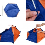 Prosta konstrukcja z elastycznych prętów umożliwia szybki montaż i demontaż w kilka minut. Po złożeniu namiot mieści się w kompaktowym pokrowcu, dzięki czemu łatwo przeniesiesz go do samochodu, na plażę lub do ogrodu. Materiał łatwo się czyści i jest odporny na zabrudzenia, więc pielęgnacja zajmuje minimum czasu.