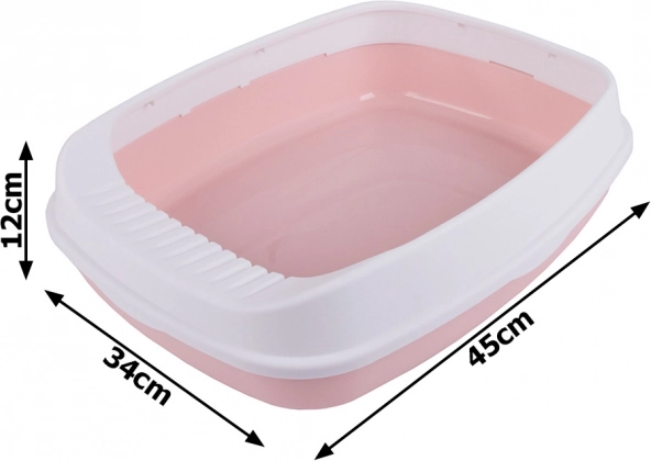 Praktyczna i przestronna kocia toaleta z ramką i łopatką dla łatwej pielęgnacji. Dzięki otwartej konstrukcji i wysokim brzegom skutecznie ogranicza bałagan wokół. Wykonana z wytrzymałego plastiku, ma gładką powierzchnię do szybkiego czyszczenia, a dzięki wymiarom 45 × 34 × 12 cm nadaje się także dla większych kotów.