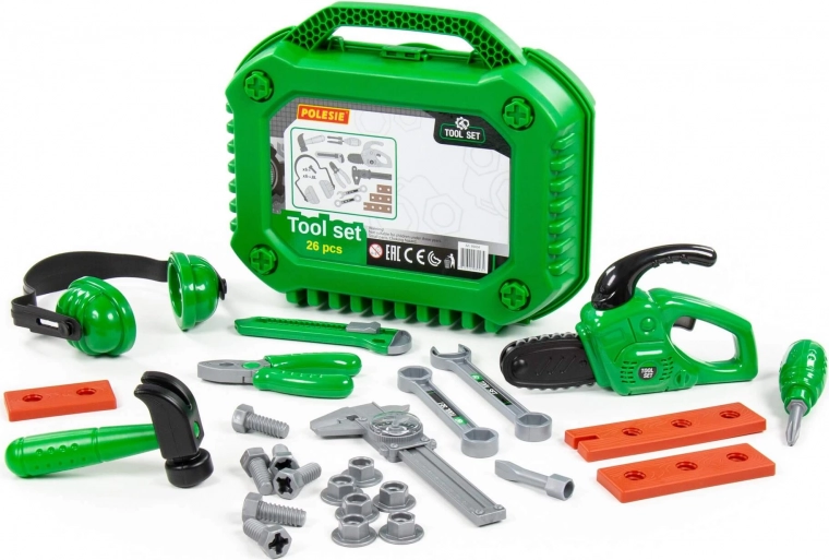 Zestawy narzędzi producenta Polesie są przeznaczone zarówno do zabaw grupowych w placówkach przedszkolnych, jak i do indywidualnej zabawy dziecka. Wszystkie elementy zawarte w zestawie są funkcjonalnie identyczne z prawdziwymi i pozwalają rozwijać małą motorykę oraz koordynację ruchową dziecka. Zestawy te pomagają dzieciom zapoznać się z podstawowymi zasadami współdziałania poszczególnych elementów, a tym samym rozwijają wyobraźnię przestrzenną.