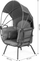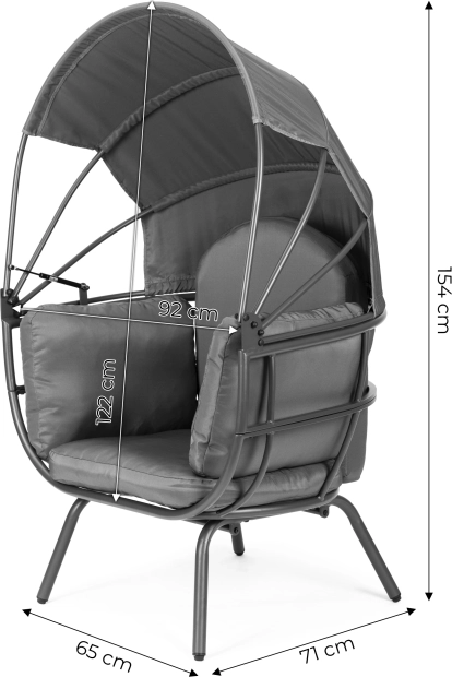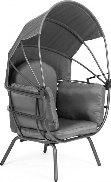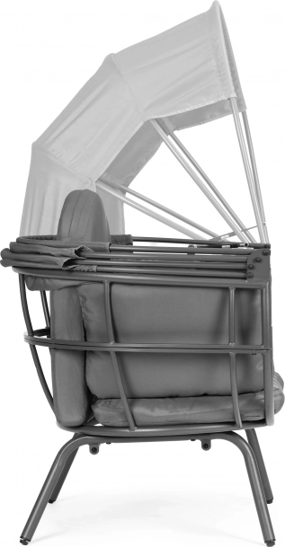Stabilna i solidna stalowa konstrukcja zapewnia bezpieczeństwo i wygodę. Duży składany daszek daje przyjemny cień w upalne dni i chroni przed podmuchami wiatru. Czytanie, opalanie czy relaks na zewnątrz nabiorą nowego wymiaru.