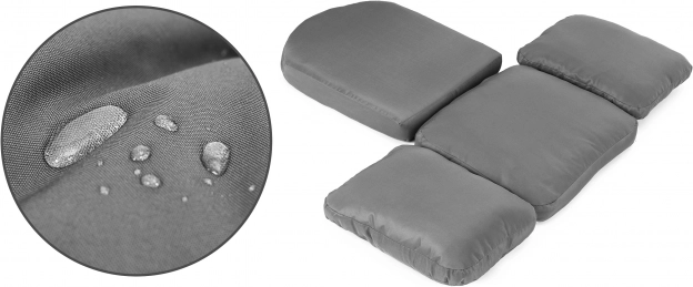 Dla maksymalnego komfortu do fotela dołączono cztery poduszki. Są one nie tylko wygodne, lecz także odporne na wszelkie warunki atmosferyczne. Materiał jest łatwy w pielęgnacji i szybko schnie, a zamki błyskawiczne ułatwiają zdejmowanie poszewek do prania.