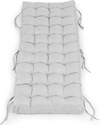 Uniwersalna szara poduszka na leżak lub fotel ogrodowy zapewni maksymalny komfort i styl Twojej przestrzeni na zewnątrz. Trwały materiał jest wodoodporny i odporny na warunki atmosferyczne, dzięki czemu świetnie sprawdzi się na tarasie, balkonie i w ogrodzie. Dzięki praktycznym paskom mocującym trzyma się pewnie na miejscu i pasuje do większości standardowych modeli leżaków, krzeseł oraz ławek.