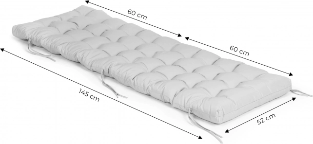 Wytrzymała tkanina jest łatwa w utrzymaniu, odporna na ścieranie i blaknięcie oraz przystosowana do użytku na zewnątrz. Długie paski mocujące po czterech stronach zapobiegają przesuwaniu i utrzymują poduszkę dokładnie tam, gdzie jej potrzebujesz. Neutralny szary kolor łatwo dopasować do większości mebli ogrodowych.