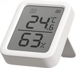 Natychmiastowy wgląd w temperaturę i wilgotność na czytelnym ekranie z ikoną komfortu, aby szybko ocenić warunki w pomieszczeniu.