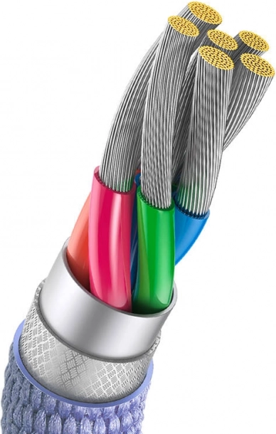 Wysokiej jakości tekstylowy oplot oraz wzmocnienie w miejscu zgięcia chronią kabel przed łamaniem i wyciąganiem. Wewnątrz znajduje się 8‑żyłowe okablowanie zapewniające stabilne ładowanie i komunikację danych. Eleganckie fioletowe wykończenie dopasuje się do Twojego stylu, a dzięki długości 1,2 m zapewnia wygodny zasięg w domu, biurze i samochodzie.
