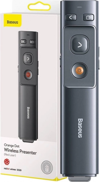 BASEUS Orange Dot to kompaktowy i elegancki prezenter, który doda Ci pewności podczas wystąpieć w pracy i w szkole. Dzięki czerwonemu laserowi o zasięgu do 100 metrów będziesz mieć prezentację pod kontrolą nawet z drugiego końca sali, a stabilne bezprzewodowe połączenie 2,4 GHz zapewni płynne przełączanie slajdów bez opóźnień.