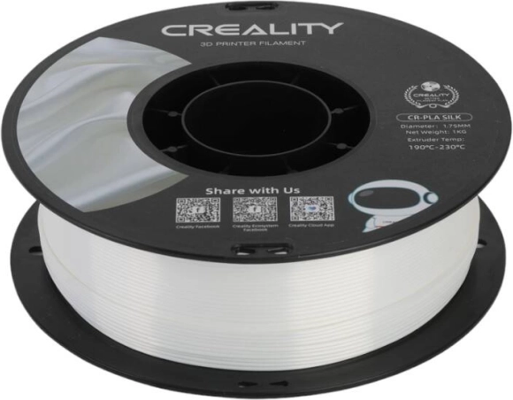 Creality CR‑PLA Silk w kolorze białym tworzy modele z perłowo gładką powierzchnią bez konieczności dodatkowego polerowania. Dzięki starannemu nawinięciu druk przebiega bez plątania i z równomiernym podawaniem materiału. Idealny do figurek, dekoracji, prezentów i biżuterii, gdzie liczy się premium wygląd i łatwa obróbka.