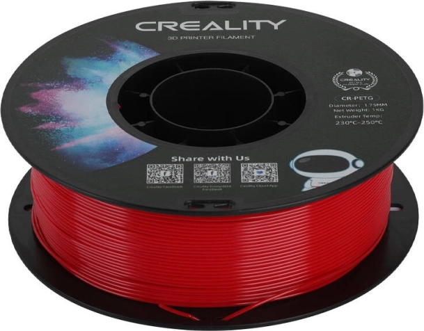 Filament CREALITY CR‑PETG w intensywnie czerwonym kolorze łączy zalety materiałów PLA i ABS. Dzięki stabilnemu składowi z ekologicznego PETG drukuje z doskonałą adhezją warstw i wysoką wytrzymałością na rozciąganie 49 MPa, zachowując odporność na wilgoć i pękanie. Błyszcząca powierzchnia podkreśla detale modeli i nadaje wydrukom profesjonalny wygląd.