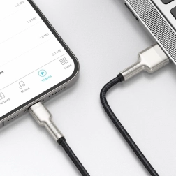 Metalowe złącza ze stopu cynku są odporne na utlenianie, a wytrzymały nylonowy oplot chroni wewnętrzne przewody przed załamaniami i przetarciami. Kabel jest stworzony do codziennego użytkowania.