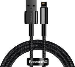 Wytrzymały kabel danych Baseus Tungsten Gold dla urządzeń Apple oferuje szybkie ładowanie 2,4 A oraz transfer danych do 480 Mb/s. Dzięki inteligentnemu zarządzaniu napięciem chroni iPhone’a przed przeładowaniem, przepięciem i przegrzaniem. Pleciony nylonowy oplot i wzmocnione złącza zapewniają długą żywotność przy codziennym użytkowaniu.