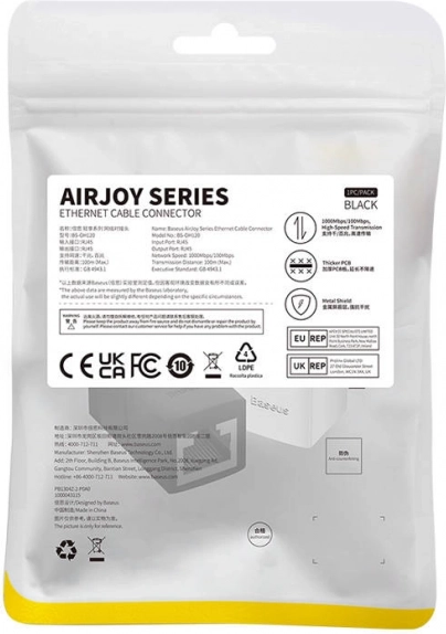 Łatwo przedłuż swój kabel Ethernet bez utraty wydajności. Złącza BASEUS AirJoy zapewniają szybkie i stabilne połączenie z przepustowością do 1000 Mb/s, obsługują RJ45 i dzięki wysokiej jakości wykonania gwarantują bezpieczną transmisję bez zakłóceń. Odpowiednie dla TV, routerów, switchy, hubów i PC. W zestawie znajdują się 2 sztuki dla elastycznej rozbudowy sieci.