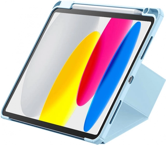 Składana przednia klapka działa jako stojak z regulowanym kątem do pisania, rysowania, oglądania wideo lub czytania. Przemyślane detale, takie jak uchwyt na Apple Pencil / Baseus Stylus oraz otwory wentylacyjne odprowadzające ciepło, zwiększają komfort codziennego użytkowania.