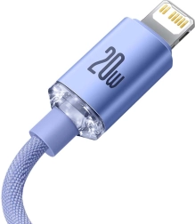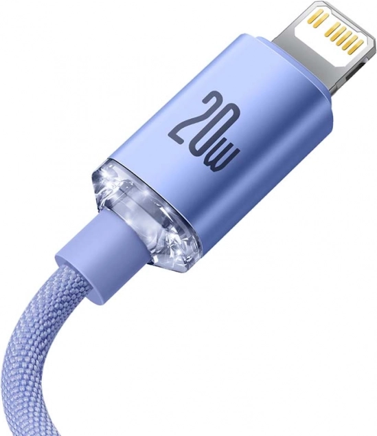 Stylowy kabel Baseus Crystal z złączami USB‑C i Lightning oferuje szybkie ładowanie PD 20 W, transfer danych do 480 Mb/s oraz trwały oplot w eleganckim fiolecie. Dzięki długości 2 m, inteligentnemu układowi dla bezpiecznego ładowania oraz wysokiej jakości aluminiowym złączom to idealny wybór dla urządzeń Apple.