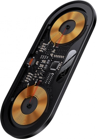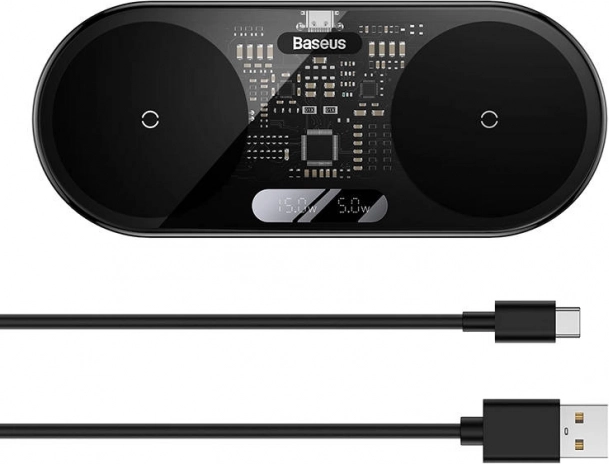 Bezprzewodowa ładowarka Baseus zapewnia szybkie i efektywne ładowanie dwóch urządzeń jednocześnie, zarówno dla urządzeń z iOS, jak i Androidem. Wyposażona jest w cyfrowy wyświetlacz LED, który pokazuje aktualną moc ładowania.