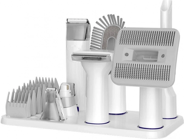 W zestawie znajduje się precyzyjny trymer włosów między poduszkami łap, pilnik do pazurów oraz różne nasadki do różnych długości i typów sierści. Dzięki pojemnemu zbiornikowi 1,5 l i praktycznym akcesoriom do przechowywania konserwacja jest prosta i higieniczna – idealne rozwiązanie do codziennej pielęgnacji w domu.