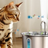 Wykorzystanie stali nierdzewnej 316 zapewnia, że woda pozostaje czysta, a fontanna jest łatwa do czyszczenia. Wszystkie części można myć w zmywarce, co ułatwia konserwację. Dodatkowo możesz śledzić poziom wody dzięki przezroczystemu oknu z LED oświetleniem.