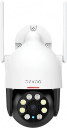 Inteligentne wykrywanie ruchu precyzyjnie rozpoznaje osoby i wysyła natychmiastowe powiadomienia do aplikacji Dekco. Do dyspozycji jest syrena alarmowa 90 dB, konfigurowalne strefy detekcji oraz dwukierunkowa komunikacja do rozmów z gośćmi lub kurierami w czasie rzeczywistym (w tym opcja zmiany głosu). Nagrania można zapisywać na karcie microSD (brak w zestawie) oraz w chmurze z możliwością nagrywania 24/7.