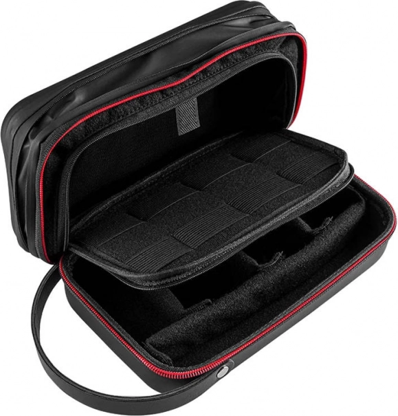 Kompaktowe wymiary, solidna rączka i gładki zamek błyskawiczny umożliwiają łatwe i bezpieczne podróżowanie z Twoim zestawem.
