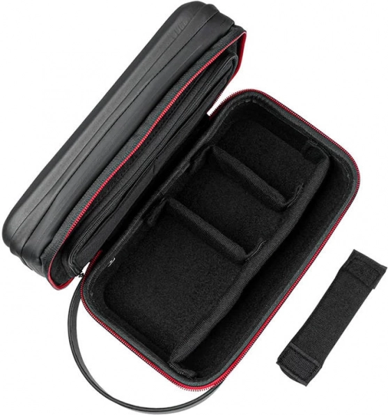 Przemyślany układ wewnętrzny z regulowanymi paskami i przegrodami pozwala dokładnie dopasować przestrzeń do kamery, baterii, kija selfie, kabli i innych akcesoriów. Oddzielna kieszeń z siatki przyda się na drobiazgi. Wygodne noszenie zapewnia ruchoma rączka, a kompaktowe wymiary łatwo mieszczą się w plecaku.