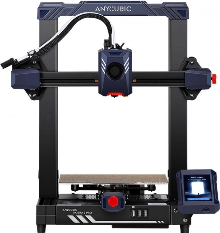 ANYCUBIC Kobra 2 Pro to wydajna drukarka 3D FDM zaprojektowana do szybkiej produkcji wysokiej jakości wydruków. Łączy standardową prędkość 300 mm/s i maksymalnie 500 mm/s z inteligentną kompensacją drgań i kontrolą przepływu, dzięki czemu nawet szczegółowe modele drukuje czysto i z wysoką powtarzalnością. Konstrukcja z bezpośrednim podawaniem filamentu, podwójnymi prowadnicami osi oraz podwójną śrubą Z zapewnia stabilność i precyzję.