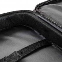Wnętrze można dopasować do rozmiaru urządzenia dzięki regulowanemu paskowi. Miękka wewnętrzna pianka chroni przed wstrząsami, a dodatkowe kieszenie pozwalają przechowywać akcesoria, takie jak kable czy myszki, aby mieć wszystko zawsze pod ręką.