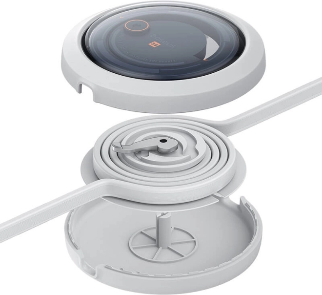 - Konstrukcja ze zwijaniem – kompaktowo, przejrzyście i bez plątania przewodów.