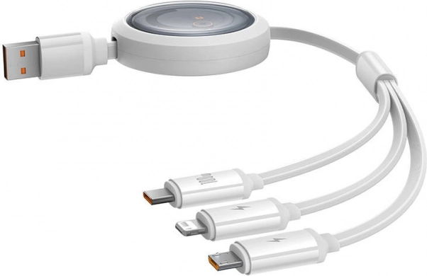 Wysuwany kabel ładujący 3 w 1 BASEUS Free2Draw 100 W, 1,1 m, biały