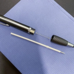 Ryflowany uchwyt z ABS/TPR zapewnia pewność w dłoni, metalowa końcówka gwarantuje gładki ślad, a mechanizm przyciskowy umożliwia szybkie wysuwanie i chowanie wkładu.