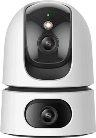 IMOU Ranger Dual 6MP to inteligentna wewnętrzna kamera Wi‑Fi PTZ z dwoma przetwornikami 3MP, umożliwiającymi jednoczesny monitoring dwóch obszarów – na przykład salonu i wejścia na taras. Połączenie obiektywu PTZ (obrotowego/uchylnego) i obiektywu stałoogniskowego zapewnia płynne pokrycie 360° bez martwych pól. W nocy oferuje czysty obraz dzięki czarno‑białemu i kolorowemu widzeniu nocnemu oraz inteligentnemu trybowi, który przy wykryciu ruchu automatycznie przełącza się na kolor.