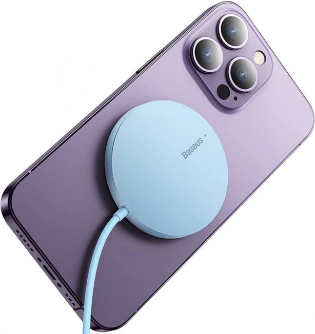 Minimalistyczne wykonanie w niebieskim kolorze, grubość jedynie 6,1 mm oraz możliwość obrotu o 360° zapewniają wysoki komfort. Ładowarka jest kompatybilna z iPhone 12/13/14 i wspiera ładowanie także przez odpowiednie etui.