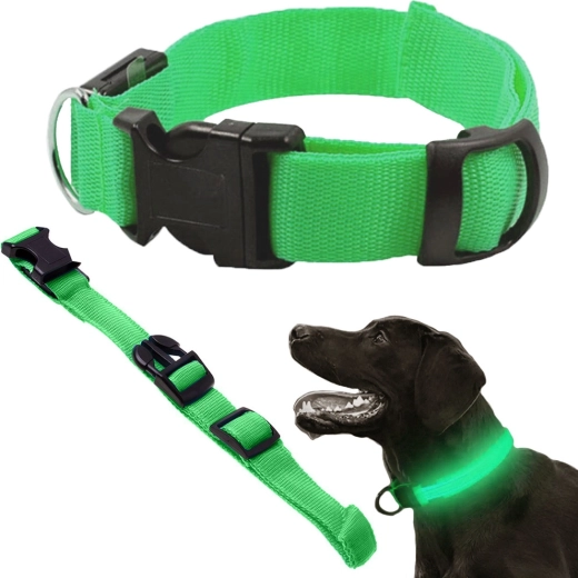 LED świecąca obroża dla psów i kotów, regulowana 36–59 cm – zielona