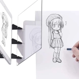 Optyczna płyta do rysowania wykorzystuje przezroczysty panel akrylowy, który wyświetla obraz z ekranu telefonu lub tabletu na papierze jako delikatny kontur. Wystarczy umieścić urządzenie w stojaku, wybrać motyw i zacząć odrysowywać – bez skomplikowanych aplikacji i bez projekcji światłem. Dzięki kompaktowym wymiarom A5 jest idealna do domu, szkoły i w podróży.